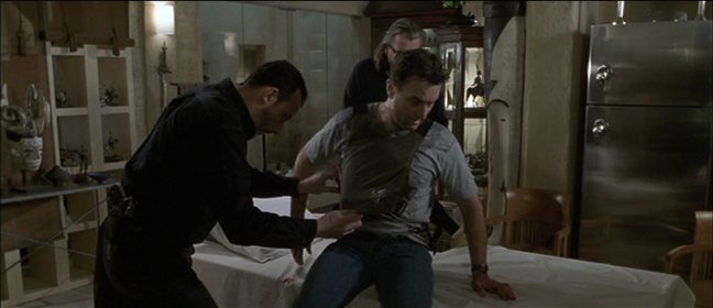 Le scénario est bon sur le début du film, l’histoire est simple et déjà vue, mais elle est bien faite et tient la route. L’histoire avance sans lenteur et on est pris dedans. Puis une fois arrivé à Nice, et que cette trahison a été faite, c’est un autre film qui s’offre à nous et malheureusement, ce n’est pas aussi bon. Une fois Reno et De Niro en fuite, le film va alors enchaîner les facilités assez incroyables. Le final est un peu du grand n’importe quoi, j’ai eu l’impression d’être pris pour un con. Jean Reno qui est un tueur qui n’ose pas donner une droite à un garde sous peine de ne jamais s’en remettre. Jean Reno qui se déplace comme un éclair sans même savoir où Robert de Niro va. Idem pour De Niro qui rejoint un personnage dans une voiture comme si cette voiture avec toujours été là. Des personnages qui reviennent comme ça, parce qu’il faut les faire revenir, ou Jonathan Pryce qui guide des flics pour s’en sortir, on n’y croit pas un instant… Et il y en a beaucoup d’autres, mais je ne vais pas vous spoiler tout le film, c’est déjà pas mal comme ça.