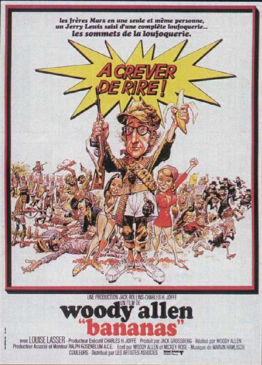Voilà donc la scène d’ouverture de « Bananas » troisième réalisation du célèbre cinéaste newyorkais. Avec cette ouverture complètement absurde, Woody nous indique la couleur d’emblée. Son film sera donc cynique, illogique dans un sens, irrationnel, dénonçant et critiquant les dictateurs sud-américains, mais sur le ton de l’humour et presque le n’importe quoi.