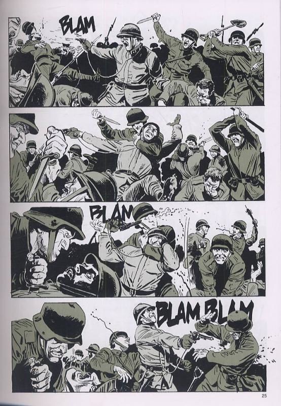 Batailles est une BD qui se découpe en deux parties distinctes. Durant la Première Guerre Mondiale, Pietro Battaglia est dans les tranchées et il est un guerrier hors norme. Alors que les autrichiens lancent une offensive destructrice, il se réveille seul au milieu d’un charnier. Essayant de retrouver son armée, il se faire tirer dessus. Mort, il se retrouve en tête en tête avec la mort, personnifiée en une jolie femme. Ne se laissant pas faire, il la viole et se barre. Il se réveille alors en vampire, détruisant tout sur son passage pour passer sa colère. A la fin de la guerre, Pietro devient un mercenaire, un tueur à gages qui n’a aucun scrupule tant qu’il y a de l’argent à gagner. Il se retrouve dans le village de Zarafa où une élection politique tourne au pugilat.