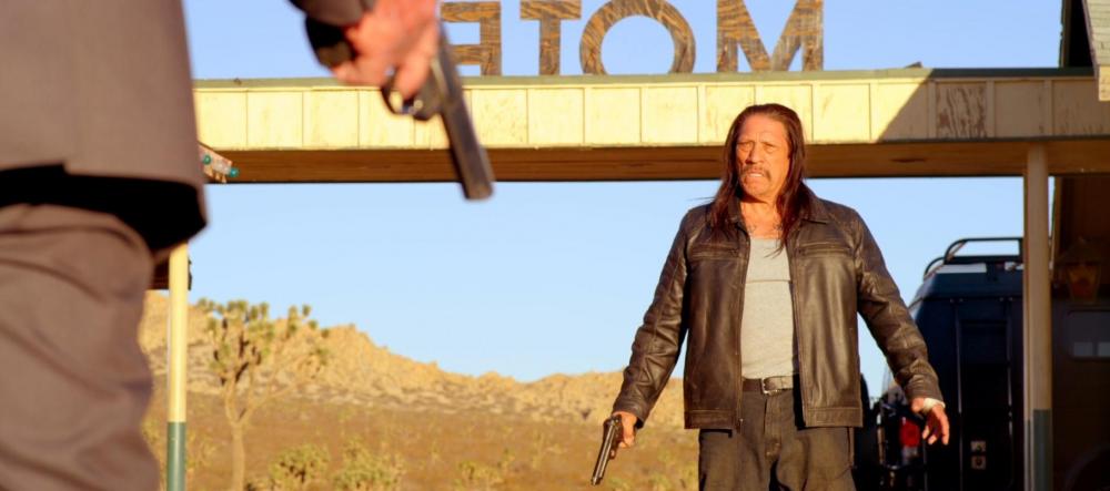 Et comment, à partir de ce constat imminent, espérer avoir de l’action en bonne et due forme? Le film sera parsemé d’échanges de coups de feu entre le héros, la police et les malfrats. Le scénario essaye de dynamiser le film en mettant en avant des quiproquos, mais bien souvent est ridicule et accumule les incohérences. Il faut dire que l’on a déjà du mal à voir Danny Trejo en flic héros vu sa tronche de bandit. Mais le pire viendra de la fin du film, qui consiste en un jeu du chat et de la souris autour d’un motel en plein désert, où l’acteur flingue sans sourciller des dizaines de méchants, en marchant et en regardant à travers des stores miteux. Rien de galvanisant, mais on s’y attendait un peu. Le problème, c’est qu’au niveau des enjeux dramatiques, le film en est dénué puisque Trejo ne craint jamais rien et s’en sort toujours, ce qui pousse à la compréhension rapide de la fin du film.