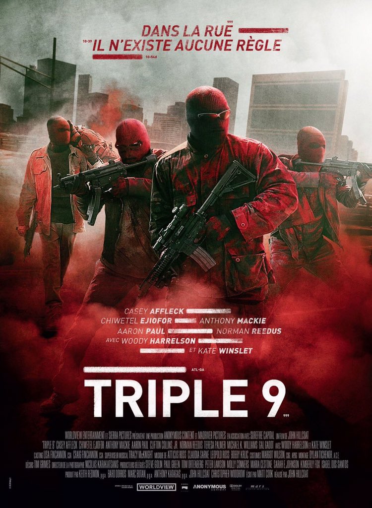 Très clairement, dans le cinéma contemporain, on distingue deux sortes de films de braquage. Ceux qui indiquent de façon directe leur choix et dont le scénario se concentre uniquement sur la façon de faire le braquage (Braquage à l’Anglaise, Braquage à l’Italienne), et ceux dont le ou les braquages ne sont qu’un prétexte pour fournir une histoire plus complexe autour de personnages dont les personnalités vont s’affirmer. Dans ce deuxième style de film, on trouve des incunables à l’image de Heat de Michael Mann ou encore The Town de Ben Affleck. Lorgnant du côté du thriller et s’étirant sur de longues heures afin de constituer une matrice de personnages plus ou moins complexes, ce genre de film fait des émules mais rares sont ceux qui arrivent à la cheville de ces deux monstres. John Hillcoat, réalisateur du sympathique Des Hommes Sans Loi, tente sa chance avec Triple 9, un film de braquage qui n’en est pas vraiment un et qui essaye de rivaliser avec les plus grands, notamment grâce à un scénario complexe et une galerie de personnages torturés. Et si le résultat reste inférieur aux deux films précités, Triple 9 n’en reste pas moins un très bon film, qui manque de plusieurs choses, mais qui contient aussi de très bons points.