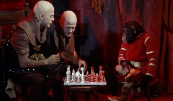 Il y a aussi concernant la direction d’acteurs quelques dommages certains. Les acteurs sont peu convaincants et font preuve par moment d’un jeu trop théâtral avec des intonations, regards ou gestes mal appropriés. En revanche cela colle bien à d’autres telle Sybil la sorcière, personnage présent principalement pour apporter un ressort comique à chacune de ses apparitions et interprété par Estelle Winwood (qui jouera d’ailleurs une tante ‘Enchantra’ dans « Ma sorcière bien aimée », quelques années plus tard). Des passages humoristiques pas forcement mal venus, qui toutefois adoucissent foncièrement les choses et rendent encore plus rigolo/naïf l’objet, notamment lors des séquences dans l’antre de Sybil se transformant en panthère noire. C’est une sorcière peu habile avec la magie, une catastrophe parfois (à un moment elle va essayer de centupler la force de George en augmentant celle de ses attributs magiques, mais finalement va lui enlever tout pouvoir se trompant dans la formule utilisée) mais à l’amour maternelle salvateur. Antre où l’on trouve un chimpanzé qui ne fait pas grand-chose, des siamois chauves en serviteurs plus ou moins amusants (avec leurs voix et attitudes de gros bêtas). Un effet comique qui est accentué aussi par les bruitages utilisés comme une ponctuation humoristique, que ce soit lors de ces instants ou d’autres (apparitions/disparitions des sorciers, le miroir magique, la confection d’une potion et ses bruits de grenouilles/crapauds etc.).