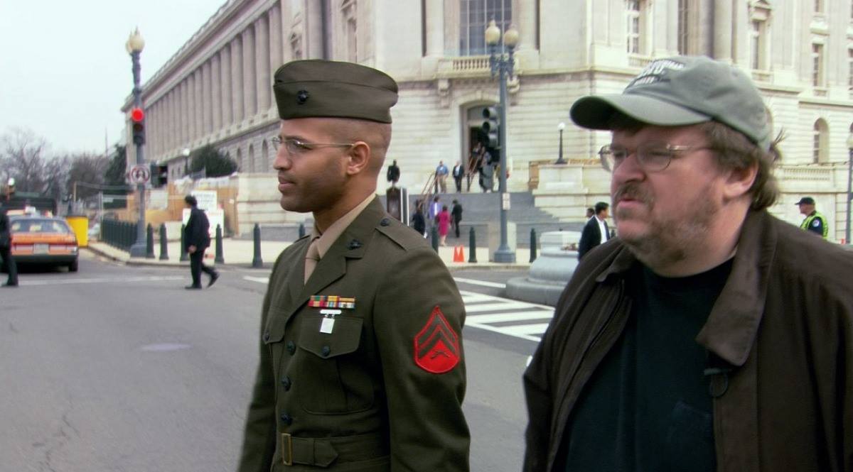 Michael Moore y dénonce également les méfaits du Patriot Act et les souffrances provoquées par la guerre en Irak.