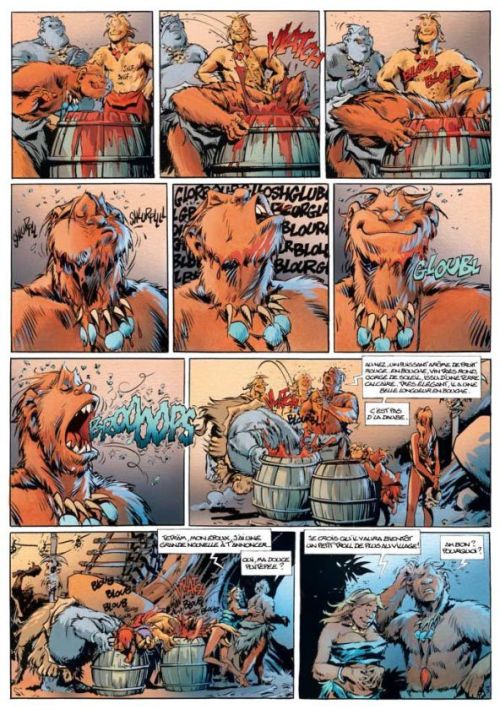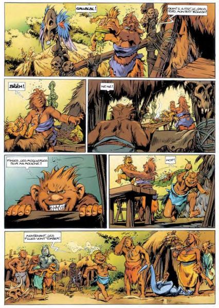 D’ailleurs, par bien des aspects, Trolls de Troy est une machine à pognon qui a perdu la notion de générosité au fil des ans. Si les premiers tomes dépassaient parfois les 50 planches, les derniers sortis n’arrivent même pas à 48 planches, le format pourtant standard, alors que les prix ont fortement augmenté. Manque d’inspiration ? Volonté de faire moins mais d’en sortir plus vite ? La question est posée mais il faut savoir que cela entache sur la lecture. En effet, si l’on regarde le tome 20 ou même le tome 19, les résolutions des histoires se font sur les deux dernières planches, à la va-vite, alors que le départ est rempli de vide ou alors de gore sans grand intérêt si ce n’est de montrer la puissance des trolls. Il manque clairement quelque chose à cette série pour devenir un peu plus sympathique et faire moins commercial. Trolls de Troy a souvent du mal à s’affranchir des codes cinématographiques comme lorsqu’ils sont rétrécis ou lorsque Waha change de corps avec une humaine et on a parfois une sensation de facilité qui est assez désagréable, comme si les deux auteurs ne voulaient pas arrêter de faire quelque chose qui marche.