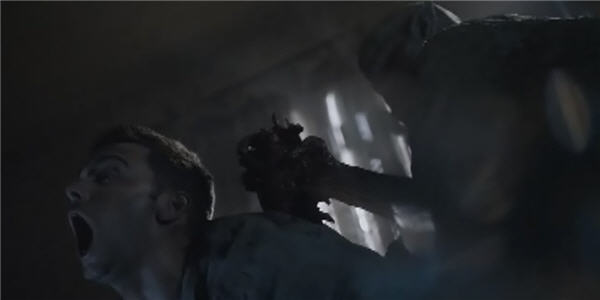 En fait, le film mise beaucoup sur ses effets de peur et sur la frénésie de sa réalisation. Mais là encore, c’est complètement raté. Si les effets gores sont présents, ils ne servent pas à grand-chose si ce n’est à combler un vide scénaristique et surtout une absence d’intelligence dans la gestion de la peur. Les jump scare sont éculés et la mise en scène est catastrophique, préférant faire bouger la caméra dans tous les sens pour ne montrer qu’un bout du monstre tant le costume est mal foutu. Du pur latex qui renvoie à certains films de monstres des années 70/80 avec un budget famélique. Mais le pire dans tout ça, c’est que le film n’hésite pas à singer certaines références en la matière sans jamais parvenir à trouver une identité propre. Ainsi, on a une allusion à Predator lorsque le Leprechaun arrache la colonne vertébrale d’une victime ou encore au Alien de Ridley Scott dans la gestion du monstre que l’on ne voit jamais en entier, mais cela est vraiment mal fichu et prête plus à rire qu’autre chose.