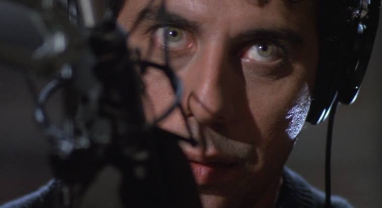 Avec ce film, Oliver Stone livre là l’un de ses films les plus virulents qui laisse transparaître toute la bêtise d’une société qui part à la dérive. Le principe même de l’émission résonne comme une immense critique qui démontre bien les contradictions de l’être humain. Comment et surtout pourquoi écouter un homme qui tient des propos pareils ? Pourquoi appeler si c’est pour se faire raccrocher au nez ? D’ailleurs, les dernières voix off que l’on pourra entendre dans le film sont édifiantes de bêtise. Cette émission est donc animée par un homme détestable au possible, arrogant, prétentieux, un homme qui ne respecte rien ni personne, hormis sa propre liberté de parler. Un homme et un personnage que nous-même, spectateur, on déteste profondément, et pourtant, un peu comme les auditeurs de son émission, on ne peut s’empêcher d’être littéralement pendu à ses lèvres. Et c’est là la grande réussite du film de Stone, car le réalisateur, dans un sens, nous met à la place de l’auditeur et parfois, devant les propos tenus par Barry Champlain, on se verrait bien appeler afin de pouvoir le remettre en place, même si l’on sait parfaitement qu’il s’en fout.