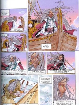 Cependant, l’album n’est pa exempt de défauts, dès le départ, et d’autres qui vont apparaître au fur et à mesure des tomes. En premier lieu, il est vrai que l’histoire, dans sa globalité, peut sembler être commune. Une héroïne, un jeune berger qui va devenir un héros malgré lui, un méchant revanchard et un voyage épique initiatique, on déjà vu et lu cela dans diverses histoires de fantasy. Et Weëna n’échappe pas forcément à la règle dans son ensemble, fournissant une jolie aventure, qui se lit sans déplaisir, mais qui peine à surprendre et surtout, qui a du mal à maintenir un suspens sur les huit tomes qui constituent la saga. D’autre part, il faut accrocher à cet univers relativement « mignon » et qui fait très féminin. Outre le fait que ce soit une héroïne, l’univers demeure très coloré et par moments, on a tendance à se rapprocher d’une histoire d’amour mièvre et pas assez ambiguë. Mais le défaut le plus surprenant va venir à partir du septième tome. En effet, le dessin va virer au style manga en cours de route et nuit complètement à l’intrigue. L’aspect shojo se fait ressentir, les émotions sont amplifiées sur les visages et on a même droit au petit trait simulant la colère dans les bulles de dialogue. C’est très pénible et appuie un côté enfantin qui ne sied absolument pas à la série.
