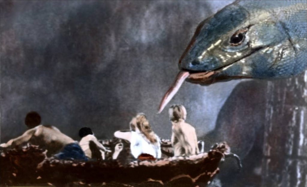« Voyage au centre de la Terre« , c’est aussi des effets spéciaux qui datent aujourd’hui, mais qui restent extraordinaires. Certains trucages sont bluffants et tiennent encore le coup. Je pense à la scène des lézards géants, ou encore l’éruption géniale du volcan.