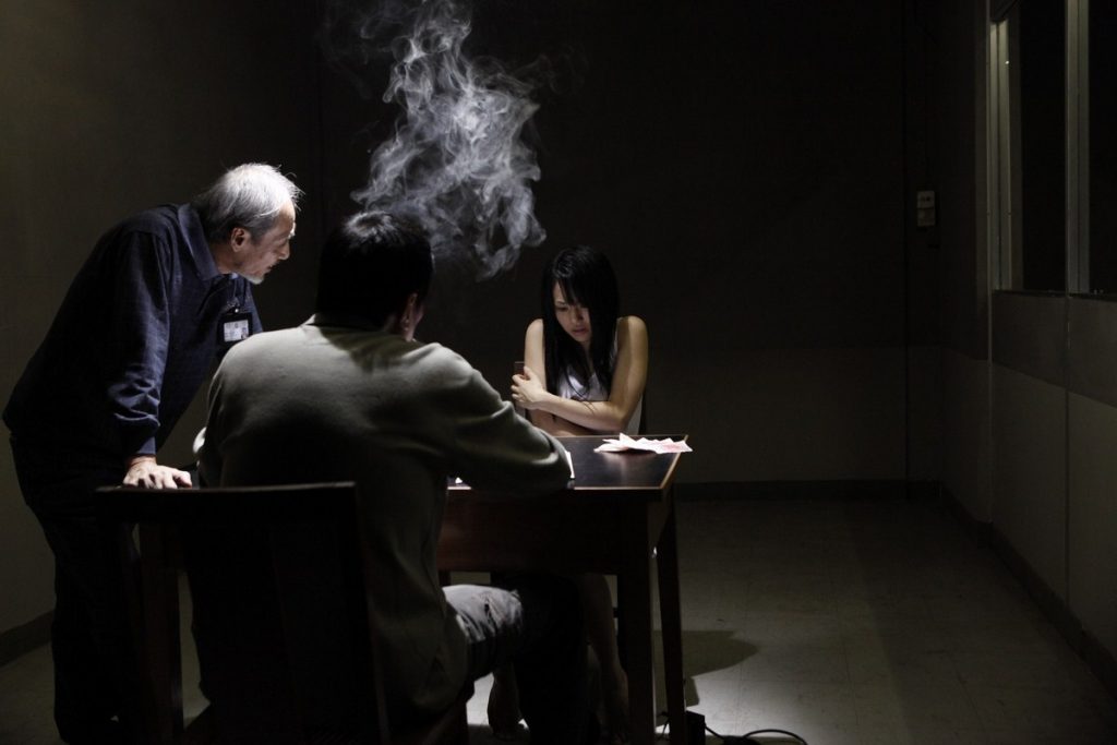 Le film est découpé en cinq chapitres. Le premier pose une première intrigue avec un homme qui tue des femmes enceintes et leur arrache leur fœtus. La police mène alors l’enquête et va rapidement arrêter l’homme en question, déjà connu des services de police. Ce premier chapitre est relativement violent, notamment dans les séquences gores, mais surtout, il ne laisse que peu d’ambiguïté sur les sentiments que l’on va éprouver pour le tueur. Impassible, volontaire, mutique, on prend presque du plaisir à le voir se faire maltraiter durant son interrogatoire. Ce qui frappe aussi d’entrée de jeu, c’est la réalisation. Entre de jolis plans-séquences, des ralentis intéressants et une volonté de montrer la violence de la façon la plus crue possible, Revenge – A Love Story possède une véritable identité visuelle. Tout comme ce silence qui pèse sur le film, n’utilisant quasiment jamais de la musique, afin de rendre encore plus lourds les silences du tueur.