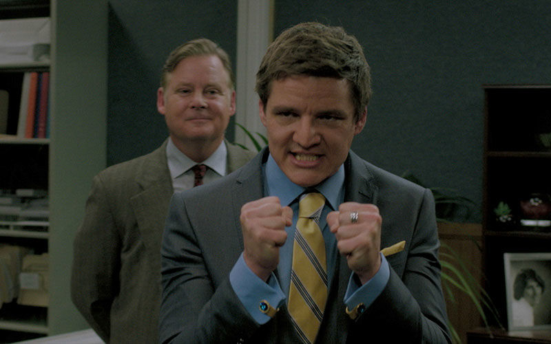 Cette façon de faire rappelle bien évidemment le cinéma d’horreur à faible budget des années 80, avec une longue présentation des personnages et quelques meurtres pour faire patienter jusqu’au dernier acte. Le plus gros reproche que l’on peut faire à ce film, c’est que les personnages manquent de charisme et que l’on a du mal à s’attacher à eux, hormis Amanda, la femme du héros, qui dégage un charme certain et semble la seul à ne pas surjouer la comédie, restant dans un rôle assez sérieux. D’autre part, les dialogues tournent vite en rond et à vide, restant perpétuellement sur le sexe, les relations homme/femme ou cette volonté de constamment draguer ou baiser. On retrouve donc la secrétaire un peu chaude, le gros lourd qui n’a jamais baisé personne ou encore le geek de base très maladroit lorsqu’il fait des réflexions. Fort heureusement, un acteur va venir sauver la mise, c’est Pedro Pascal. Même si l’acteur est en roue libre, surjouant à mort le côté cool de son personnage, il n’en reste pas moins drôle, notamment sur la fin avec son côté nonchalant.