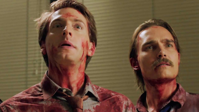 La comédie horrifique est un genre qui ne connait pas la crise. Depuis les films des années 40 avec Abbot et Costello faisant mumuse avec Dracula et les monstres de chez Universal, le genre ne s’est jamais éteint et atteint même une apogée durant les années 2000. Il faut croire que le monde a besoin de dédramatiser certaines horreurs, les adolescents ont envie de rire avec un bon bain de sang et les producteurs s’en donnent à cœur joie, alternant le culte comme Shaun of the Dead et le très mauvais avec Lesbian Vampire Killers. Entre ce grand écart qualitatif, on peut retrouver des films assez sympathiques, à l’image de Doghouse ou Severance. A travers ces quelques lignes, on se rend vite compte que le cinéma britannique est assez friand de ce sous-genre, mais les américains ne sont pas en reste. Exclusif à certains festoches, Bloodsucking Bastards a été très mal vendu. Perçu comme un actionner vampirique avec beaucoup d’hémoglobine, le film sera tout autre chose, et ce n’est peut-être pas plus mal. Car en-dehors du fait que le film soit assez sympathique, il propose aussi une vision assez marrante du travail, voyant cela comme un acte vampirique. Bref, même si Bloodsucking Bastards n’est pas le film du siècle, il n’en demeure pas moins agréable.
