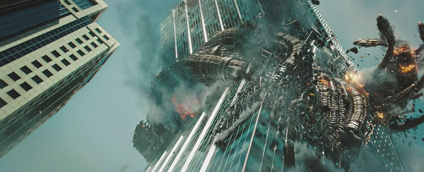 L’histoire de Transformers 3 est relativement simple et n’embête pas avec une réflexion bien poussée sur la condition humaine par rapport aux robots. En même temps, on s’en fout, il s’agit juste de mettre un prétexte pour une guerre gigantesque entrainant plein de dommage et de destruction massive comme seul le cinéma peut nous en fournir. Donc, pour faire court, il s’agit d’une suite aux deux premier films. Des humains ont retrouvé un vaisseau extraterrestre sur le côté sombre de la lune (d’où le titre), renfermant une technologie qui pourrait sauver la planète des autobots. Seul problème, il manque beaucoup d’objets indispensables au sein de la navette et on va vite se rendre compte que ce sont les méchants, les décepticons, qui ont choppé les autres cylindres. Du coup, une guerre éclate, car les méchants veulent faire venir leur planète dans l’orbite de la Terre et détruire celle-ci au profit de la leur, réduisant ainsi l’humanité en esclavage. Heureusement pour nous, les gentils sont là pour nous protéger et nous sauver. Donc rien de bien reluisant là-dedans, si ce n’est un prétexte à mettre des batailles dans tous les sens et des explosions de partout. Alors je n’ai rien contre ce genre de spectacle, d’autant plus qu’ici, les effets spéciaux tiennent la route, mais bon sang que c’est long ! Voulant à tout prix faire un film qui dure 2h30, Bay en oublie l’ennui et la lassitude du spectateur, essayant de justifier chaque action des personnages par des dialogues insipides, de l’humour lourdingue et surtout une mise en scène peu efficace dans ces moments-là. Le résultat, c’est que l’on s’ennuie ferme durant ces passages. D’autant plus qu’ils sont fort agaçants à cause de personnages absolument imbuvables. C’est bien simple, on a l’impression qu’aucun être humain n’est « normal ». Entre la chef qui change de chaussures et qui possède une palanquée de sacs, l’ancien agent qui roule est extraverti, extravagant et à moitié débile, le héros, imbécile et insupportable au possible et le méchant qui possède le charisme d’une huître, on est vraiment loin d’un monde habité par des personnes sensées. Et du coup, et même si l’on est dans un film fantastique, on perd en crédibilité sur les personnages humains au profit des robots qui semblent plus réfléchis que nous-mêmes. Faut-il y voir une métaphore sur le fait que les machines sont plus intelligentes que les êtres humains ? Michael Bay aimerait-il se taper un robot ?