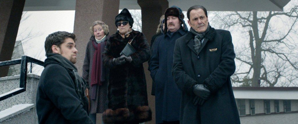 « Grand Froid« , c’est aussi un duo qui fonctionne très bien. Jean-Pierre Bacri et Arthur Dupont nous offrent de très bons moments, osant aller jusqu’au ridicule pour assurer leur personnage. Ils sont soutenus par une belle brochette d’acteurs et surtout de personnages tous aussi tordus qu’eux. Olivier Gourmet est un festival de cynisme, le « couple » Marie Berto, Philippe Duquesne est génial, quant à Féodor Atkin, c’est le best of qu’on n’attendait pas. Puis il y a une petite mention pour les deux enfants de chœur qui accompagnent ce mortifère convoi et qui vont sacrément déguster.