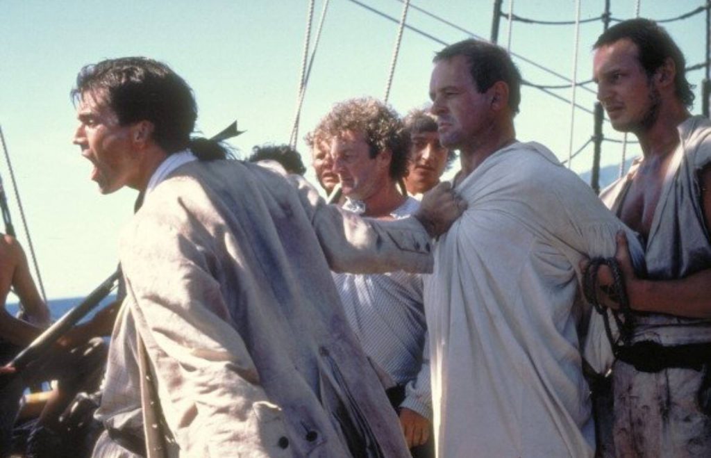 De tout temps, les marins du Bounty ont été tenus par d’immenses acteurs, Errol Flynn, Clark Gable, Charles Laughton, Marlon Brando, Trevor Howard, Richard Harris se sont succédés dans différents rôles et le film de Donaldson n’échappera pas à cette règle puisqu’on y trouve un casting de luxe pour les rôles principaux (Anthony Hopkins, Mel Gibson, Laurence Olivier) et un casting incroyable de futurs immenses talents dans les seconds rôles, Daniel Day-Lewis, Liam Neeson ou Bernard Hill. Chacun d’eux tient son rôle parfaitement et c’est un vrai petit plaisir de les suivre.