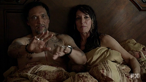 La force de cette série se concentre essentiellement sur un scénario rigoureux et qui tient toutes ses promesses. La cohérence est le premier souci de Kurt Sutter, et on peut voir l’évolution logique de chaque personnage, avec les affinités de chacun et leurs traits de caractère. Ainsi, la confrontation entre Jax et Clay, l’ancien président est forcément inévitable. Les conflits entre les autres gangs, et notamment les blacks, est sans appel et fait ressurgir une envie de vengeance. Cette saison montre aussi que pour s’en sortir avec le moins de dégâts possibles, le héros est obligé de manipuler ses frères, de leur mentir ou de leur cacher des choses pour faire sortir le club de la merde. Bref, il s’agit là d’une saison puissante en termes de violence et de cohérence scénaristique.