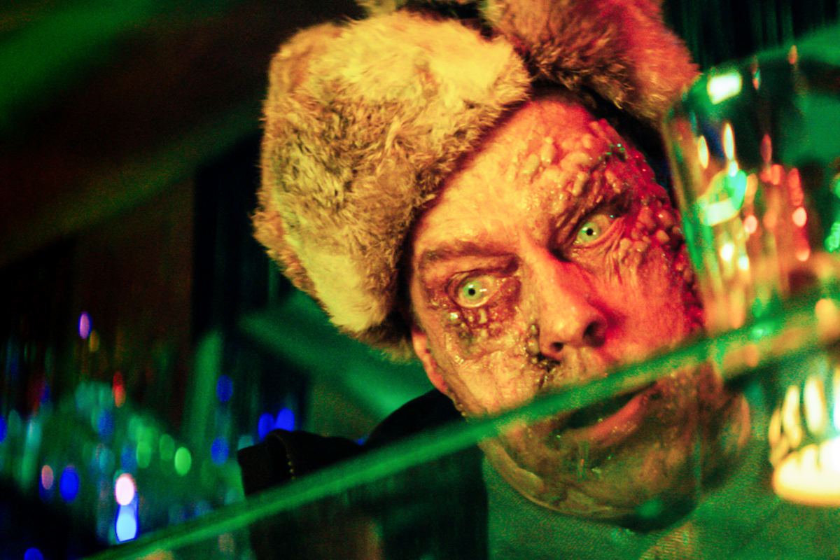 Mais l’autre défaut du film, c’est que les personnages sont tous détestables. Le premier snowboardeur est un prétentieux qui va essayer de reconquérir sa nana, qui est d’une rigidité à faire pâlir un fantôme. Les deux protagonistes s’envoient des vannes à tout va, mais rien ne fonctionne, et finalement, on se retrouve sur un schéma qui ressemble à s’y méprendre à Shaun of the Dead et c’est flagrant. Le scénariste ne s’est vraiment pas foulé et ça se voit à l’écran. On aura aussi droit au cliché de la tenancière de bar un peu costaud, au fort caractère et qui va trouver, comme par hasard, des armes de guerre dans sa cave. Impossible de s’attacher vraiment à elle puisqu’elle ne possède aucun background et n’est qu’un personnage qui aide les autres. Ajoutons à cela le méchant de base qui va s’en sortir à un moment puis qui va se faire dézinguer par une biche zombie (youpi !) et des zombies qui sont accros à la musique, au point de devenir immobile. Cela donnera lieu, encore une fois, à une scène pleine de non-sens où les héros vont danser au milieu de la meute plutôt que de se barrer fissa. On l’aura compris, on ne se prend pas au sérieux, mais rien n’est vraiment cohérent.