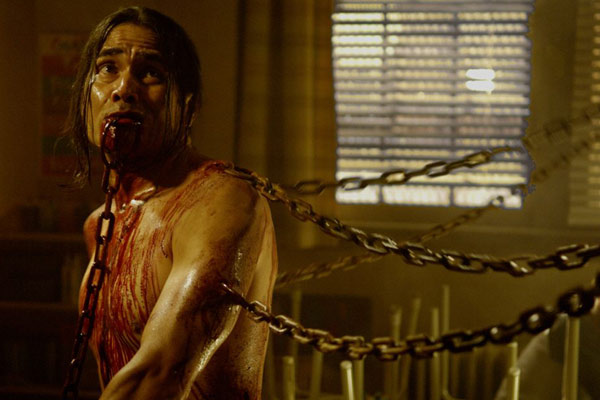 Bon par contre, les amateurs de tripaille et les apprentis bouchers seront ravis, parce que du gore, il y en a à la pelle. Et en plus, ça touche tous les organes. Entre le flic qui se brise le pied pour s’échapper, la nana qui se fait ouvrir le bide avec un corset, le type qui explose alors qu’il est enchainé sur tout le corps, celle qui se fait exploser la tête ou encore l’opération chirurgicale sur le cerveau de Jigsaw, le crade est bien présent. Mais encore une fois, ce gore n’est là que pour attirer le chaland et ne sert finalement à rien. Il y a aussi une tentative pour dégouter le spectateur, avec le broyeur de cochons pourris et le type enchaîné au sol qui risque de mourir étouffé dans le liquide pourri des porcs broyés. Le seul point qui reste efficace, c’est l’ingéniosité des pièges. Entre la nana qui se fait congeler ou encore le chevalet, les pièges sont diaboliques et assez bien fichus. Malheureusement, comme maintenant il n’y a plus d’échappatoire, le film perd en tension et en force dramatique.