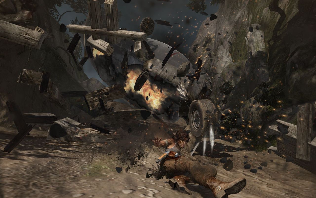 Le dernier point est lié au développement du jeu. Il faut savoir que le Tomb Raider de 2013 se définit comme un reboot tout en gardant l’identité de la série. Les développeurs de Core Design, parent des premiers Tomb Raider avaient, aux fils des épisodes, créé une archéologue forte, indépendante et plein de charisme, Lara Croft. Lorsque la série fut reprise par Crystal Dynamics, ils continuèrent sur les bases de ce personnage tout en modernisant le gameplay. En 2010, après le rachat de Crystal Dynamics par Square Enix, un nouvel épisode est mis en chantier. Au fil des mois, les développeurs feront part de leur intention de rebooter la série en commençant par détruire le mythe Lara Croft. L’idée de départ était d’en mettre plein la gueule à la jeune demoiselle afin d’observer une montée en puissance progressive. Mais ça ne fonctionne pas. La faute aux capacités ultra développées de Lara dès le début du jeu. Même si le premier meurtre semble traumatisant, il ne lui faut pas longtemps pour devenir une guerrière sans pitié. Ou cette volonté de la rendre vulnérable en lui infligeant une blessure quasiment mortelle à l’abdomen. Cependant, cette blessure ne sera soignée qu’au milieu du jeu et n’empêchera en aucune manière la progression du joueur. Ce décalage entre ce qui est montré dans les cinématiques et le gameplay est tel qu’à aucun moment on ressent une réelle peur pour Lara. On assiste juste à des scènes où elle se fait malmener pour ensuite enchaîner des batailles en étant fraiche comme un gardon.