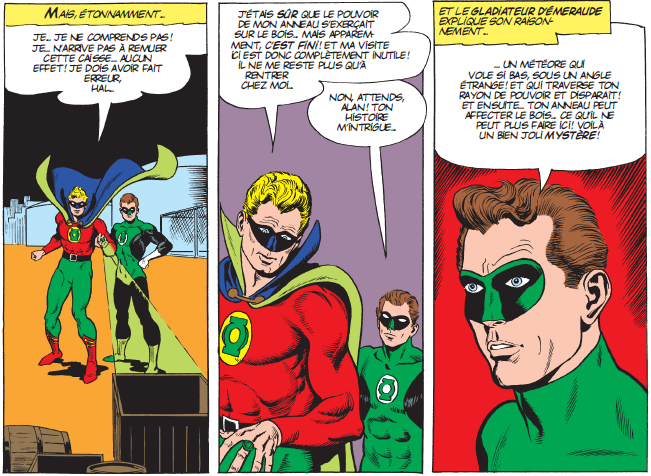 Après cet âge d’or assez naïf, on entre dans l’âge d’argent des comics et on entre dans le vif du sujet avec une histoire de Flash datant de 1961, où le nouveau Flash va rencontrer l’ancien en tournant trop vite et en partant dans une terre parallèle. L’histoire est très intéressante et on commence à voir la richesse des mondes et de tout le toutim à partir de cet âge. Autre fait important, la création de la Justice League avec une histoire de 1962 qui raconte la formation de ce collectif. L’histoire est longue et très intéressante malgré un scénario enfantin. Enfin, pour terminer cet âge, on accueille une histoire du Green Lantern, avec les origines des gardiens dans une histoire qui mélange encore les deux mondes parallèles et qui propose quelque chose de riche mais de peu complexe. Au niveau du dessin, c’est assez old school, mais on voit une nette évolution avec l’âge d’or, avec un dessin plus mature et plus riche.