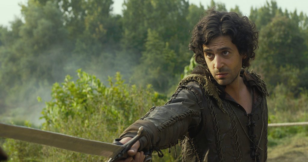 Si au moins, malgré un scénario anémique, on aurait pu avoir une belle mise en scène, mais même pas ! On va vite se rendre compte que c’est le premier film en costume de Malik Bentalha et Max Boublil tant ils semblent mal à l’aise là-dedans. Mais à la rigueur, les décors et les costumes sont les seules choses bien du métrage. Car pour le reste, c’est une horreur. Les plans sont moches. La lumière est anecdotique. La photographie est basique. Les combats sont ridicules. La mise en scène est tout sauf dynamique et on se fait grandement chier devant ce film. Et les acteurs sont catastrophiques. Max Boublil est inconsistant et pense certainement être dans un film de potes tant il est mauvais. Il n’a aucun charisme et récite ses textes comme un débutant. D’ailleurs, les dialogues sont aberrants et le montage donne l’impression d’une troupe de théâtre amateur. Le premier passage dans le bordel avec le dialogue entre Boublil et Timsit en est l’exemple parfait.