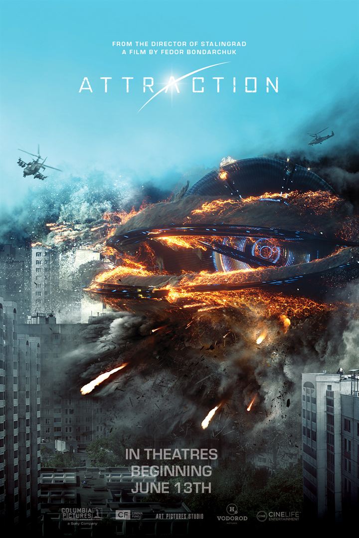 Fedor Bondarchuk n’est pas un néophyte dans le domaine du cinéma. Il commence sa carrière au milieu des années 2000 et obtient un joli succès avec Stalingrad, et cela malgré une histoire à la fois simple, mais complexe dans son approche. Avec Attraction, il bénéficie d’un budget assez conséquent (5 millions) et va tenter de délivrer un film de science-fiction à la fois attrayant, dramatique et épique. Un vaisseau spatial se dirige vers Moscou. Sans chercher à comprendre, les russes lancent une offensive et font s’écraser le vaisseau à plein Moscou. Cependant, les intentions des aliens sont pacifiques, et ils veulent juste réparer leur vaisseau pour repartir. Sauf qu’une partie de la population ne fait pas confiance à son gouvernement et à son armée et décide de prendre les armes pour faire partir au plus vite ce supposé envahisseur. Yuliya, fille du commandant, va faire une drôle de découverte.