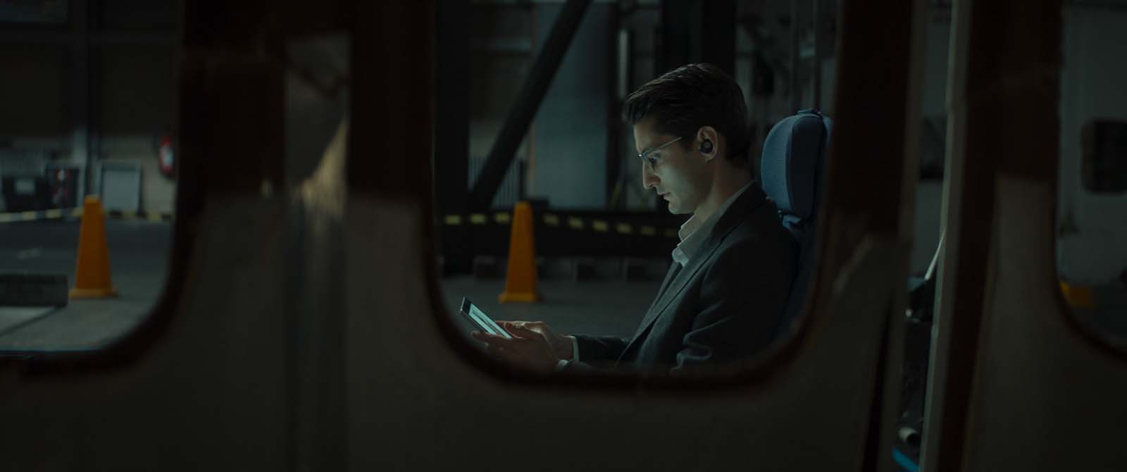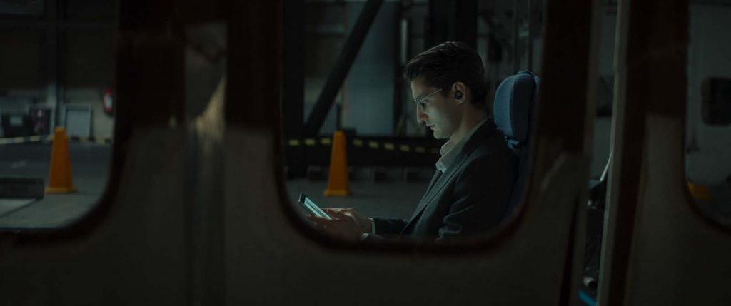 Basant son intrigue dans un département qu’on connaît mal, voire même pas du tout, « Boite noire » est un film qui se fait d’emblée intéressant. Le scénario, en partie écrit par Yann Gozlan, s’avère être excellent, même si on y trouvera des longueurs ou des maladresses, notamment dans beaucoup de ce qui sera fait autour du couple Niney/de Laâge. Précis, technologique et détaillé, « Boite noire« , en plus de son côté thriller, est un film qui m’a beaucoup intéressé dans un premier temps grâce à cette exploitation des boites noires et de tous les éléments qu’elles peuvent offrir. Le script fera la part belle à l’étude de ces éléments et surtout à l’écoute de ces boites, dont il faut décrypter et interpréter les faits, afin de connaître la vérité. Une vérité qui ici sera possiblement biaisée. Une vérité que « Boite noire » va s’amuser à tordre, laissant sur tout le long du film planer un doute sur la véracité de l’enchaînement des événements, sur la véracité des écoutes et plus largement sur l’intégrité des membres. Yann Gozlan ayant bien pensé et écrit son personnage, arrive à nous tenir sur l’ensemble de son film et au fil des événements et des enchaînements, un peu comme son personnage principal, on finit par douter de tout le monde, et ça, c’est assez jouissif.