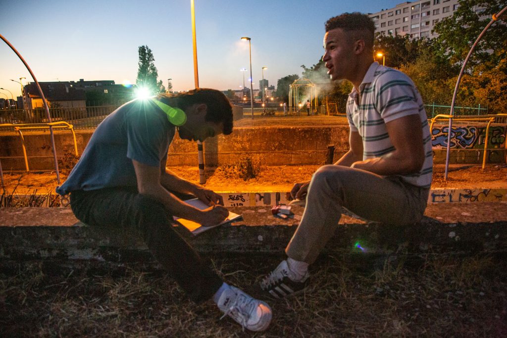 Après, même si ce côté est classique, l’ensemble est bien monté, bien raconté et c’est intéressant, en plus de faire vibrer une petite touche de nostalgie. Heureusement, si l’on peut dire, « Suprêmes » ne fait pas que raconter la naissance d’un groupe. Avec ce film, Audrey Estrougo en profite aussi pour parler de la banlieue, de ses problèmes qui plus de trente ans après sont toujours les mêmes. Rivalité de bandes, « guerre de territoire », défiance envers la police, le film a aussi un côté politique, engagé dans les textes de NTM qui dénonce certaines choses et heurte les politiques. Le film raconte aussi son époque à travers son montage qui parfois reprend des images d’archives, qui sont bien employées afin de renforcer justement le portrait de l’époque posé par Audrey Estrougo.
