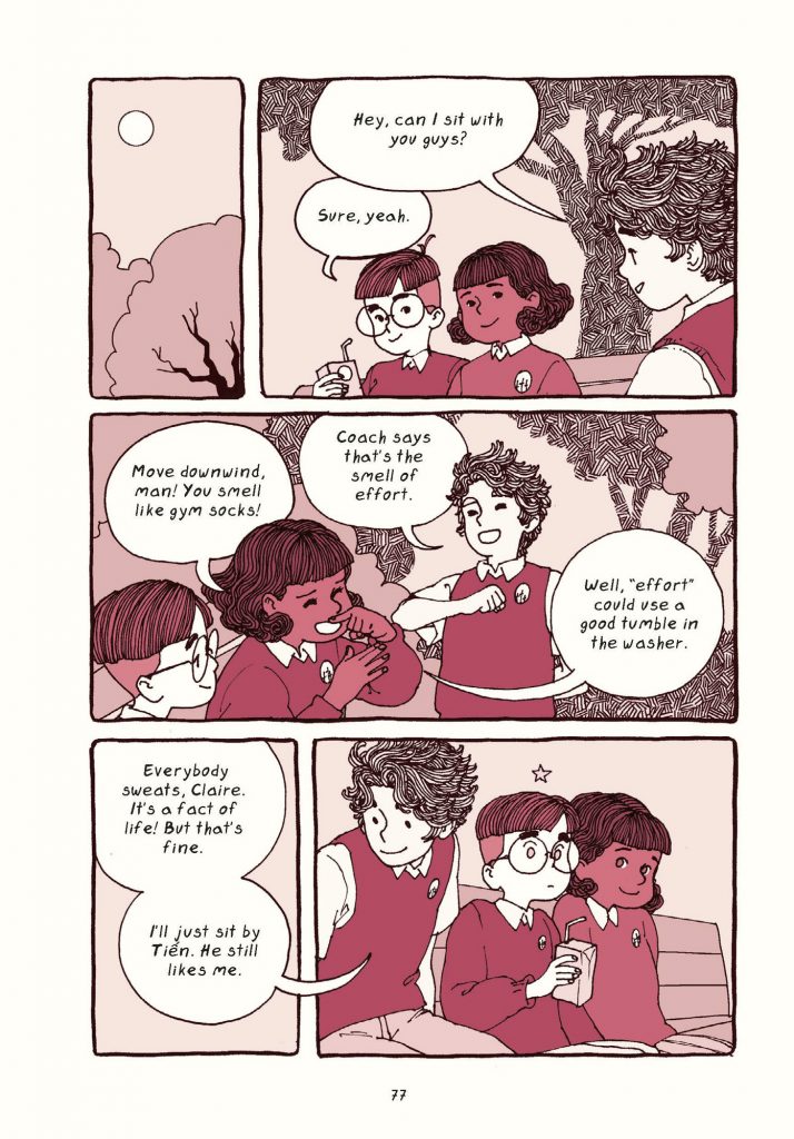 Cette douceur de vivre va prendre un peu de plomb de l’aile lorsqu’il va falloir aborder deux problèmes : le passé des parents de Tien et la maladie de la grand-mère qui va décéder et forcer la maman à retourner dans son pays d’origine. Cela tracasse Tien qui va se renfermer, occultant alors l’aide de ses amis, qui vont tout faire pour le remettre dans le droit chemin. A partir de ce moment, dans la BD, on va croiser plusieurs histoires. Tout d’abord le parcours scolaire de Tien qui va déclinant, et où la directrice va découvrir le secret de Tien. Elle va alors faire appel à un prêtre, ce qui posera problème. Puis on va aussi suivre la mère au Vietnam, qui va devoir faire son deuil et renouer avec un passé à la fois heureux et malheureux.