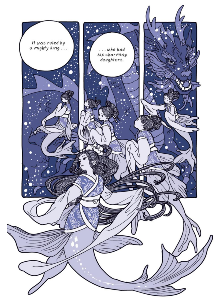 Les graphismes les plus travaillés restent ceux du conte, milieu magique et éthéré, dans lequel Tien se retrouve pleinement et s’amuse même à changer quelques petites choses pour assimiler deux cultures. Le conte va être un moyen de montrer que rien n’est figé dans le temps et que les histoires peuvent changer en fonction du narrateur et du pays. Ainsi donc, Tien va comprendre certaines choses par le conte, tout en apprenant la langue anglaise à ses parents. Le conte sera un moyen d’avouer son homosexualité, même si c’est la mère qui le comprend assez vite, changeant alors La Petite Sirène en quelque chose d’autre, de plus subtil et inattendu. Certes, c’est un peu facile, mais l’ensemble fonctionne bien. D’autant plus que les dessins sont superbes lorsqu’il faut mettre en scène des sirènes ou des princesses.