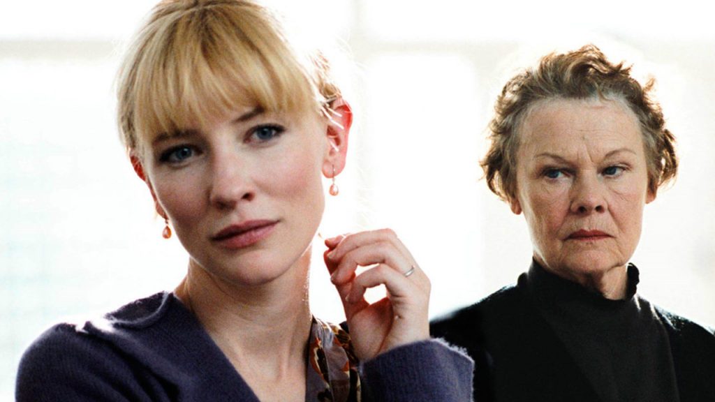 La force de ce film se fait autour des deux personnages principaux, qui sont très bien écrits, et proposent des portraits ambigus. En premier lieu, on ne peut qu’être intrigué pour Judi Dench, qui propose une professeure crainte par tout le monde, et qui n’a pas l’air sympathique. Cependant, son traitement va se faire en douceur, pour nous amener à ressentir de l’empathie envers elle, qui vit seule avec son chat en fin de vie, et qui semble bien triste et isolée. Richard Eyre va nous la faire prendre en pitié, ce qui fait que son côté antipathique passe au second plan. Mais l’intelligence du récit fait que l’on a aussi un petit doute derrière la tête, quant aux motivations de cette femme, qui va manipuler Cate Blanchett en exploitant ses faiblesses et en la faisant chanter. On ne peut s’empêcher de penser qu’il s’agit tout de même d’une sociopathe.