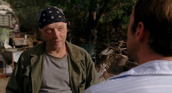 Le problème, c’est que l’ambiance ne décolle pas non plus. Il n’y a pas longtemps, j’ai vu Deadly Pledge et été atterré par l’inexistence même d’une quelconque ambiance. Et bien avec Buried Alive, c’est pareil. Aucune atmosphère ne se dégage du film, pourtant on nage en plein désert, mais on n’a aucune sensation de chaleur, de moiteur ou encore d’étouffement. Le seul lien que l’on a avec le désert, ce sont deux attaques de crotales dans une cave sombre. Pour le reste, c’est le calme plat et on s’ennuie ferme. Surtout que le rythme est vraiment lent, on doit attendre environ 40 minutes pour avoir le premier meurtre, qui est balayé en trois secondes, puis 20 minutes de plus pour en avoir un deuxième. C’est long et vu que l’on n’a pas grand-chose à quoi se rattraper, on se surprend à faire autre chose en même temps que le métrage.