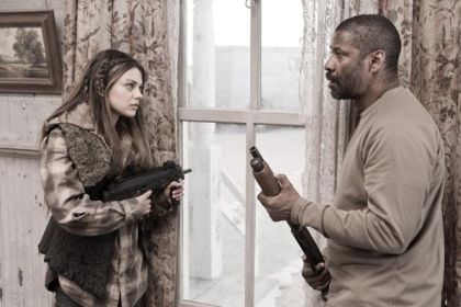 L’autre point fort du film, hormis sa réalisation et son image, c’est le casting. Alignant des têtes d’affiche très bankable, le film était sûr de faire un carton au box office. L’excellent Denzel Washington incarne Eli, le héros du métrage, détenteur de la Bible et essayant de se frayer un chemin vers cet hypothétique paradis terrestre pour délivrer la bonne parole. Il joue extrêmement bien son rôle et semble investi dans son travail. On pourra peut être lui reprocher son manque d’émotion, mais le twist final va révéler le pourquoi du comment qui donnera envie de revoir le film une deuxième fois pour saisir toutes les subtilités. Pour accompagner cet immense acteur, on a Gary Oldman, le méchant de l’histoire. En total roue libre, il donne dans un registre proche de celui du Cinquième Elément, tout en étant différent. Cultivé mais hautain, il propose un personnage à la fois éclairé et allumé, qui semble impossible à arrêter tant qu’il n’aura pas son du. Abject mais drôle, il est le méchant caricatural qui peut laisser perplexe, mais cela fonctionne. On préférera peut-être Ray Stevenson dans le rôle du bras droit, un peu plus pourri et plus sérieux. Sans concession, il est la sentence de Oldman. On pourra aussi citer ce bon vieux Malcolm McDowell dans un rôle mineur mais qui lui convient à merveille. On peut aussi compter sur le très belle Mila Kunis pour être la présence féminine du film. Ne servant pas à grand-chose au départ, elle est l’élément perturbateur qui va permettre la course-poursuite. Plutôt convaincante bien qu’optionnelle, elle reste sympathique à regarder malgré son rôle de fin qui reste trop cliché. Enfin, comment ne pas citer Tom Waits, le bluesman qui joue l’ingénieur en second rôle assez savoureux. Les effets spéciaux sont plutôt bien fichus, mais ils concernent essentiellement les décors et quelques rajouts numériques pour rendre l’atmosphère encore plus désolante. On passera sur les effets de style, comme le combat filmé à l’ombre du tunnel où l’on ne voit que les silhouettes, qui sont très beaux, mais qui ne servent pas à grand-chose.