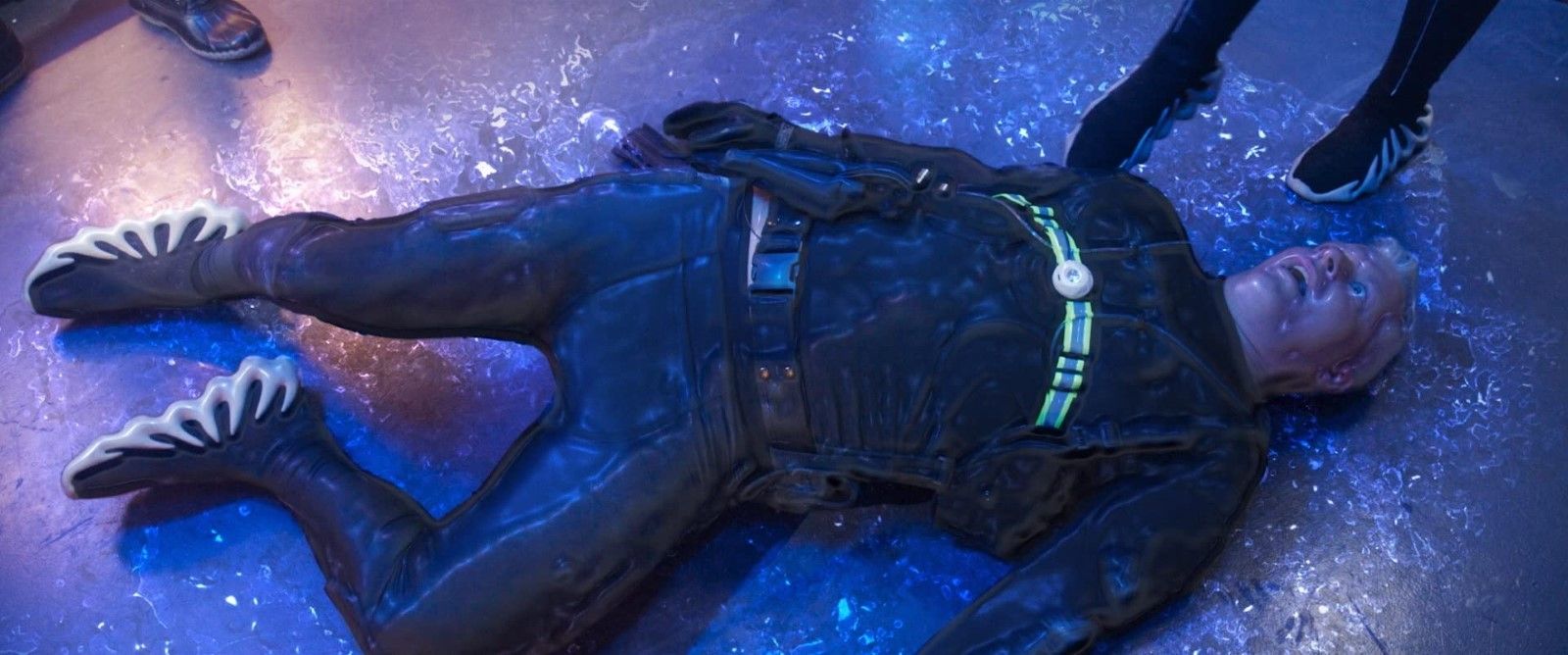 Afin de flouer la vigilance ou l’acuité d’un public souffrant d’un daltonisme exacerbé, la représentation du satellite de Neptune se pare d’une colorimétrie bleuâtre. Au demeurant, cette nouvelle planète se résume à une vallée boisée, encaissée dans un ravin où, au beau milieu, coule une rivière. Au-delà du caractère champêtre que le lieu suggère, son exploration se cantonne à un bras du cours d’eau. La réalisation ne prend guère la peine de varier le cadrage. La symbolique de la teinte ne renvoie même pas à un monde maritime. À ce stade, le nom de l’objet stellaire demeure l’unique occurrence commune avec l’univers d’Avatar. Ça et cette espèce de troufion incarnée par Michael Scovotti, vague pendant physique de Stephen Lang dans le rôle du colonel Quaritch.