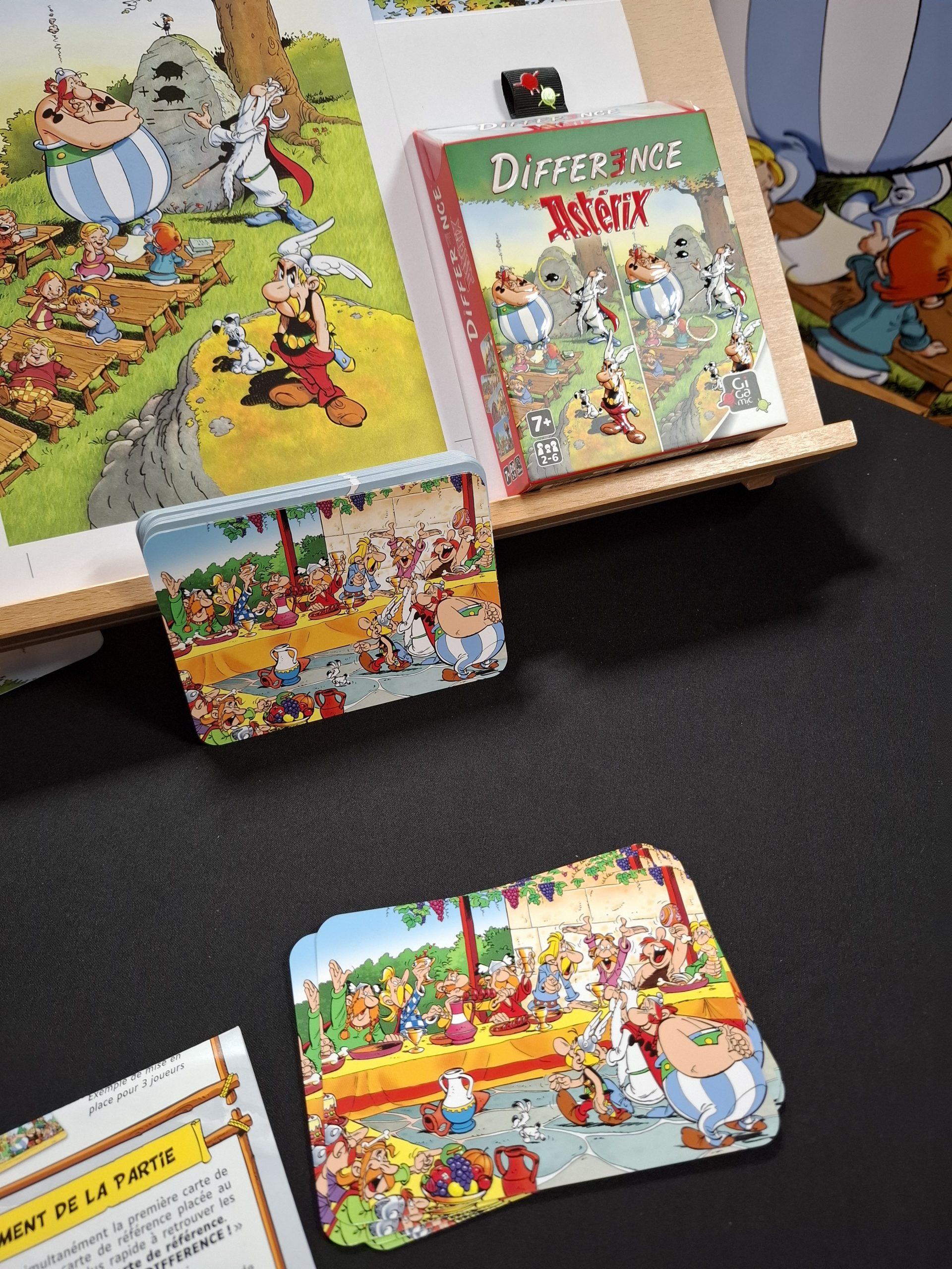 Comme son nom l’indique, un jeu dans lequel chaque ludiste doit trouver 2 différences entre son illustration et celle de référence, toutes les images étant tirées de la bande dessinée Astérix. Pas si facile à trouver au début, on en fait cependant rapidement le tour (4 images seulement mais plusieurs variations pour chacune).