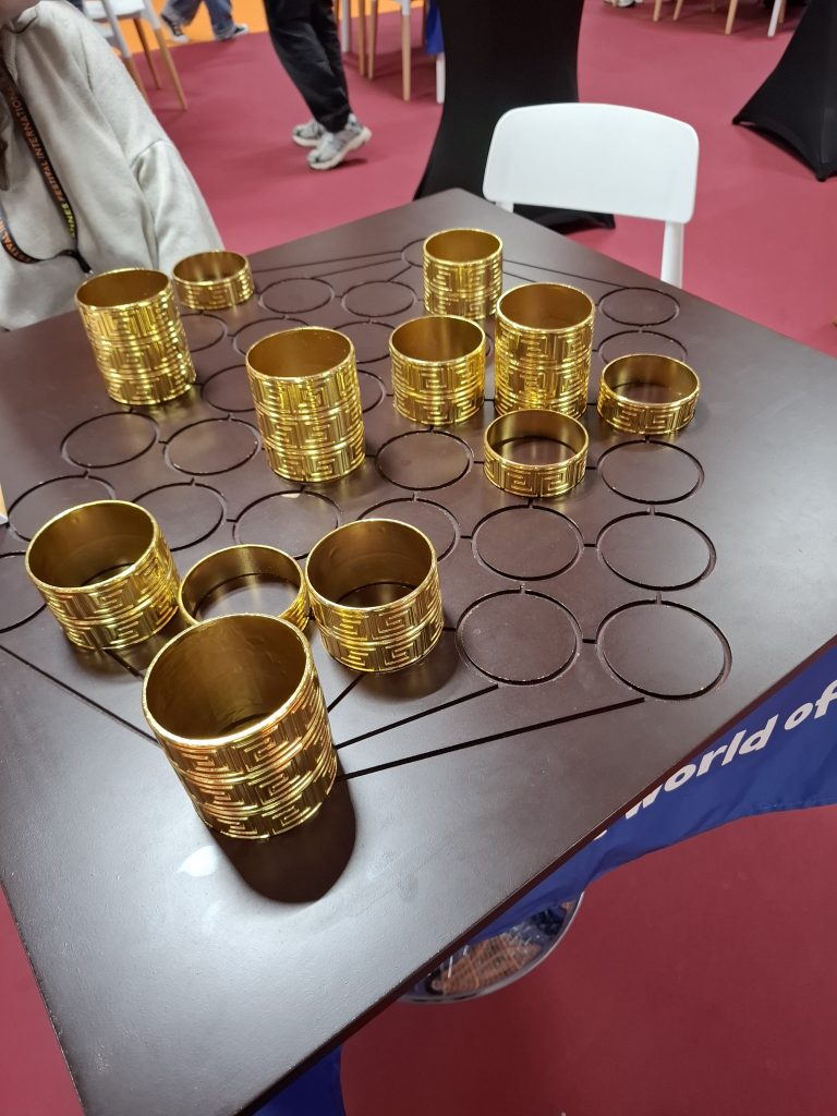 Un jeu abstrait, un ancien classique remis au goût du jour. Mécaniquement c’est simple, à mon tour je déplace une des pièces les plus proches de moi, si elle a une taille de 1 je la déplace d’une case, si elle a une taille de 2 je la déplace de deux cases, et trois pour une taille 3. Si je termine mon déplacement sur une autre pièce je peux poursuivre mon déplacement en fonction de la taille de cette pièce, le but étant d’aller dans le camp adverse. C’est pur, élégant, l’édition est superbe quoiqu’un peu chère. Un jeu d’une grande profondeur.