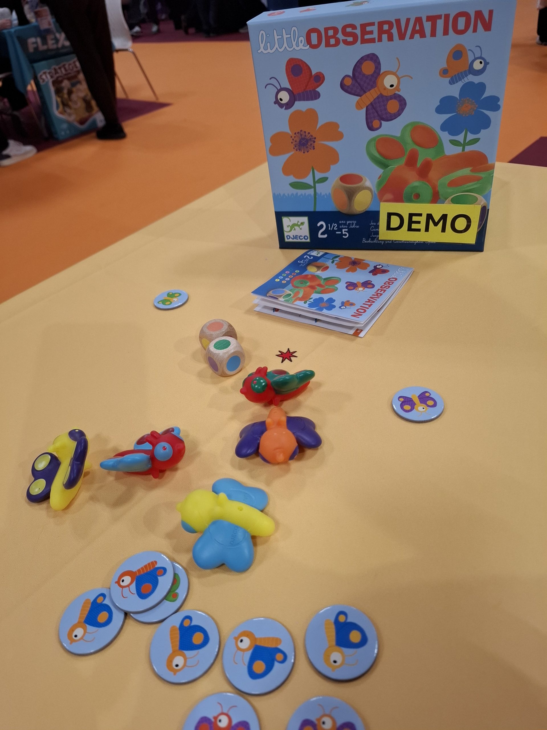 Un jeu pour enfants, je lance les deux dés indiquant chacun une couleur et tout le monde doit attraper le seul papillon possédant les deux couleurs. C’est sympathique et efficace dans son genre.