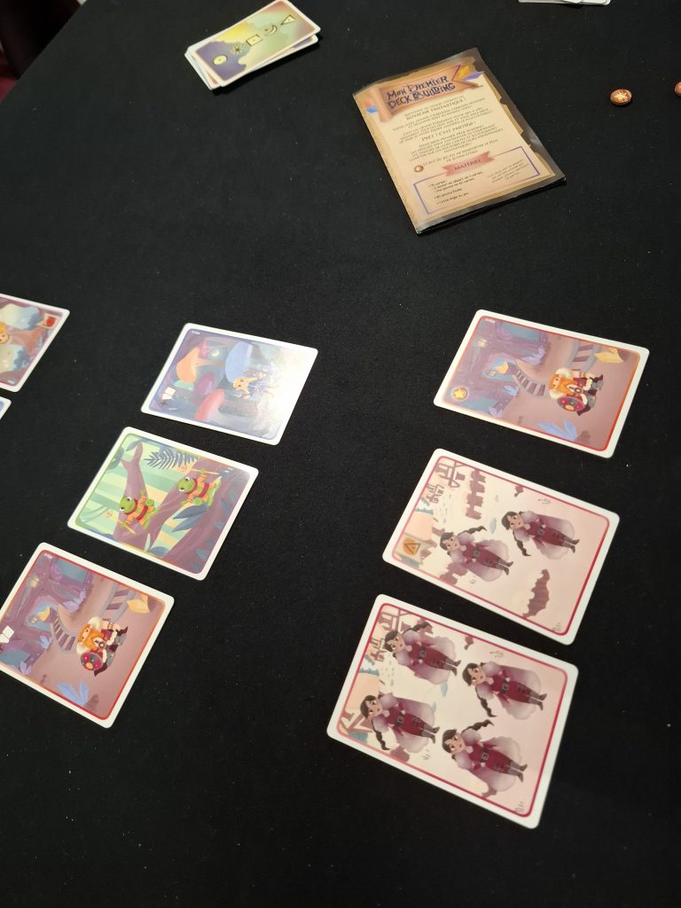 Un jeu pour enfants, comme son nom l’indique, où l’on construit son deck de personnages (guerriers, elfes, etc). On dévoile en même temps trois cartes, la personne possédant le plus grand groupe de personnages identiques prend en premier une carte dans la rivière, l’autre se servant après mais pouvant retirer de son paquet une carte de son choix. Une impression d’inégalité, car le gagnant se renforce forcément plus que l’autre et donc aura plus tendance à gagner. Aucune envie de revenir dans tous les cas.