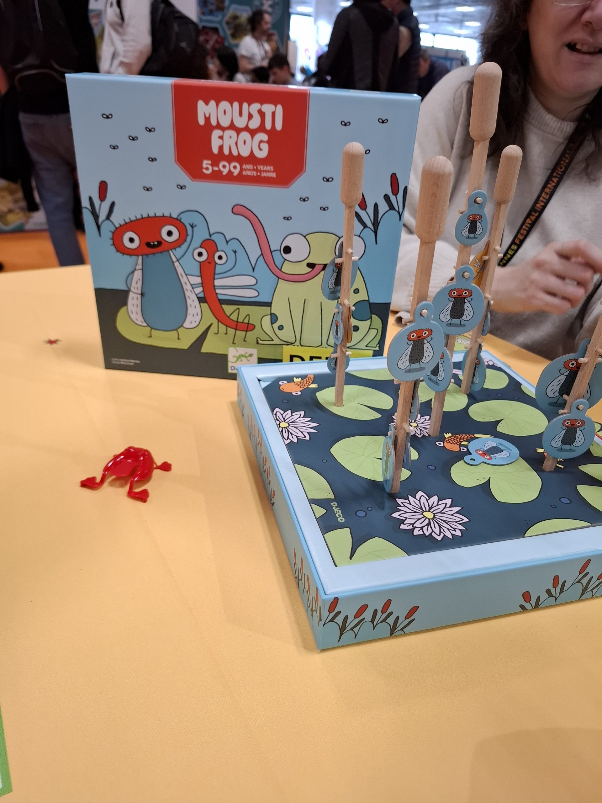 Un jeu pour enfants dans lequel il faut appuyer sur une grenouille pour la faire sauter sur les bâtons de roseaux et faire tomber les mouches. Mais attention aux moustiques ! Un matériel très chouette et un jeu d’adresse pas si facile, même pour des adultes. Plutôt sympa même si pas pour moi.