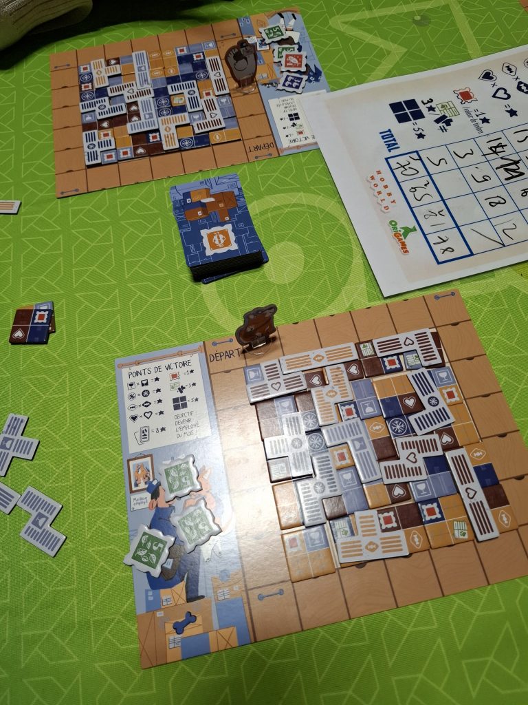 Chaque ludiste possède une grille de lettres, un thème est tiré au hasard et l’on doit trouver un mot comportant le plus de lettres possibles, en lien avec le thème, sur la ligne ou la colonne choisie. Les lettres utilisées sont recouvertes et inutilisables, le but étant de masquer toute la grille. C’est sympa mais mon cerveau a beaucoup de mal avec cette gymnastique cérébrale, je suis plus à l’aise avec les anagrammes pures.