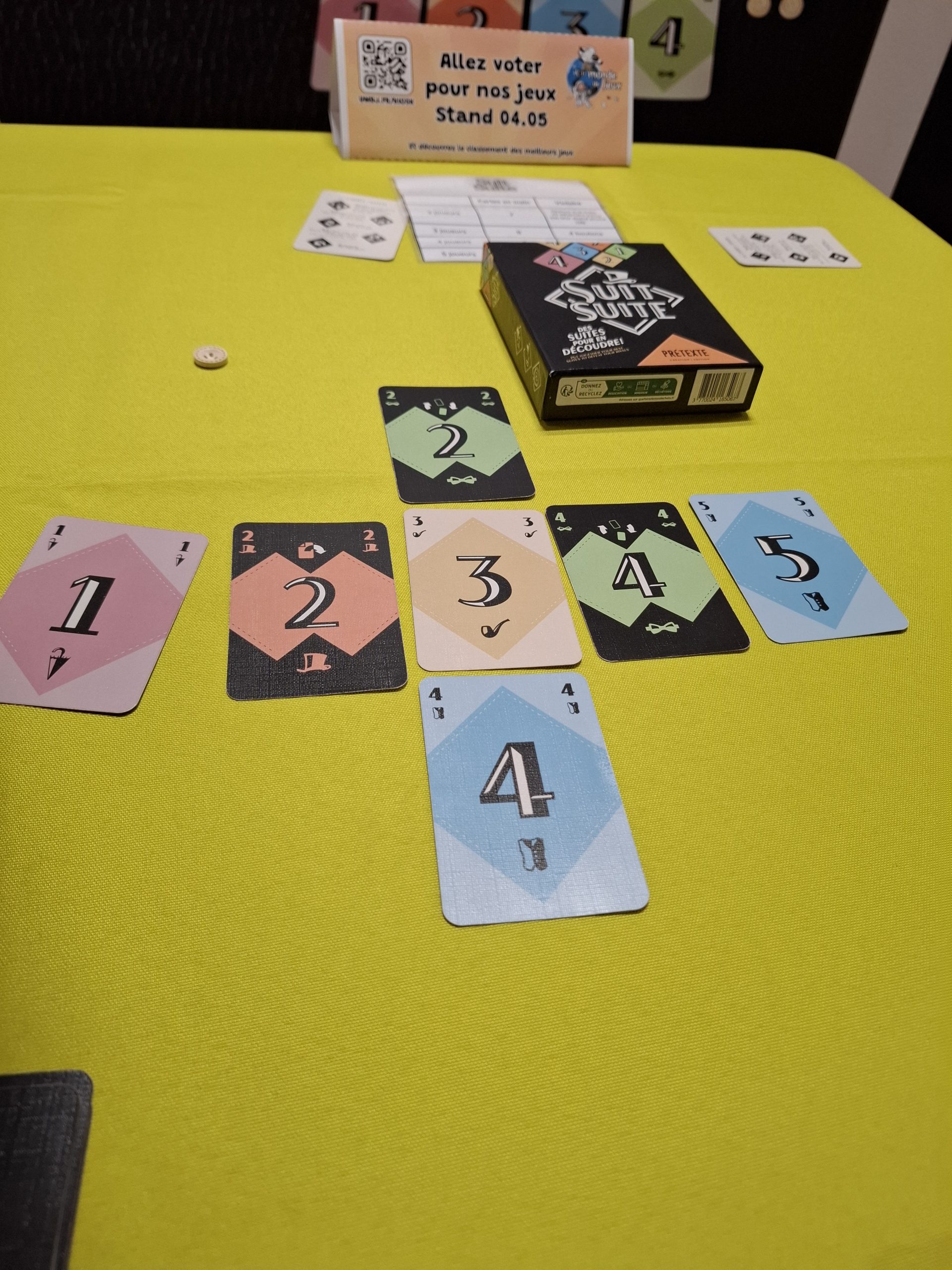 Un jeu dans lequel chaque ludiste doit à son tour poser une carte adjacente à une autre de valeur directement supérieure ou inférieure, ou recouvrir une carte de même valeur. Chaque carte possède également une couleur. Pour l’emporter il faut constituer un chemin de 5 cartes de valeurs consécutives et de couleurs différentes. Plutôt simple, sympa sans plus.