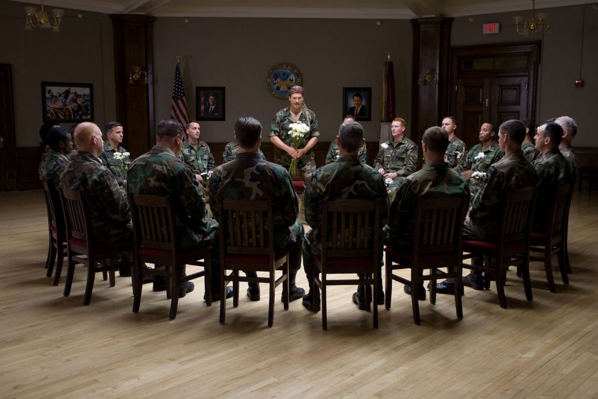 Grant Heslov, le réalisateur du film, a toujours était le producteur de George Cloney. Les Chèvres du Pentagone est son premier film, et il est donc logique de retrouver ce bon vieux George dedans. Le scénario du film est tiré d’un livre éponyme de Jon Ronson, et narre une histoire rocambolesque. Le film démarre avec une phrase qui en gros signifie que ce que nous allons voir n’est pas aussi burlesque que ça. En gros, ce que l’on va voir n’est pas si loin de la réalité et que parfois, les grands pontes américains ont des idées vraiment loufoques. L’histoire raconte les aventures d’un journaliste à la recherche d’un scoop et qui va trouver un ancien militaire qui dit avoir des pouvoirs surnaturels comme tuer un hamster par la pensée. Il va suivre cette piste jusqu’en Irak où il trouve un autre soldat ayant fait partie d’une branche de l’armée exploitant le côté psychique des gens pour utiliser la dissuasion ou tuer d’un regard. On aura donc droit à un historique sur des recherches de l’armée avec un gourou shootant ses soldats au LSD et faisant des choses incroyables comme tuer des chèvres avec un regard. Seulement, on va voir qu’un des soldats voulait exploiter le mauvais penchant de cette branche pour faire des soldats sans pitié. Bref, l’histoire est totalement barrée et presque impossible à résumer. C’est d’ailleurs le principal problème de ce film car il accumule des scènes absolument surréalistes à côté de scènes plus terre à terre. L’humour n’est pas aussi présent que l’on voudrait bien le croire et je pense que les raisons du film sont trop éloignées de notre culture. Bon, on sait qu’un bon nombre des américains sont des idiots et que beaucoup croient encore en des conneries comme la zone 51 ou aux pouvoirs psychiques de l’homme, mais ce film, non content de les montrer, ridiculise de façon absurde tous les soldats. Alors il est possible que le film satisfasse l’intelligentsia américaine ou les bourgeois se sentant au-dessus de la société, mais j’ai trouvé le film trop grandiloquent, trop péteux. J’ai préféré Burn After Reading par exemple, qui montre des personnages et pas toute une institution. On repère cette critique avec la première scène où l’on voit le visage buriné d’un soldat qui se rue vers un mur. Bref, si la critique est présente, je la trouve bien trop grosse et trop absurde. L’ambiance générale du film baigne dans la bêtise, avec des dialogues imbéciles et des situations cocasses hallucinantes.
