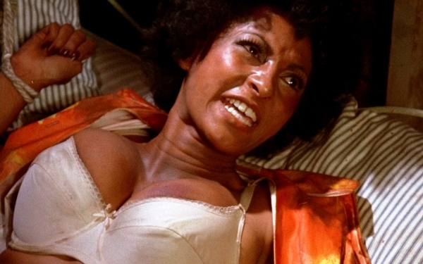 Donc « Foxy Brown » est un film qui nage en plein dans ce mouvement, c’est même un film culte, que je connaissais sans même avoir vu une image de ce film. Sur une intrigue assez surfaite, « Foxy Brown » va nous entraîner avec pas mal d’humour à suivre la vengeance de son héroïne. Et je dois dire que j’ai été assez surpris par la tournure que prend le film. Le scénario, un peu facile, il faut le dire, enchaîne bien les bons comme les mauvais rebondissements avec une bonne cadence. Parfois, on y croit, d’autres fois c’est plus difficile, mais une chose est sûre, c’est que le film n’arrête pas une minute et le tout dans une ambiance géniale, c’est d’ailleurs ce qui fait que tout passe bien dans ce film, même les moments les plus incertains. « Foxy Brown » est donc un film avec pas mal de qualités, mais aussi pas mal de défauts. Parfois j’y ai trouvé des moments pas forcément utiles à l’histoire, un peu gratuits, surtout pour le côté sexuel du film, avec les fameux plans nichons, mais bon ça donne un côté libre et fun au film. Quelques moments aussi sont un peu nuls, mais c’est aussi ce qui donne son charme au film. J’ai beaucoup aimé en fait ces moments un peu nuls, je trouve que ça va avec l’époque et le kitsch que dégage le film est très loin d’être désagréable, en même temps, je m’y attendais un peu aussi. Par contre là où il m’a beaucoup surpris, c’est dans la violence de son scénario, je ne pensais pas du tout que le film partirait aussi loin, surtout dans les moments où le personnage de Foxy est retenu en otage. J’avoue que je suis resté bouché bée devant.